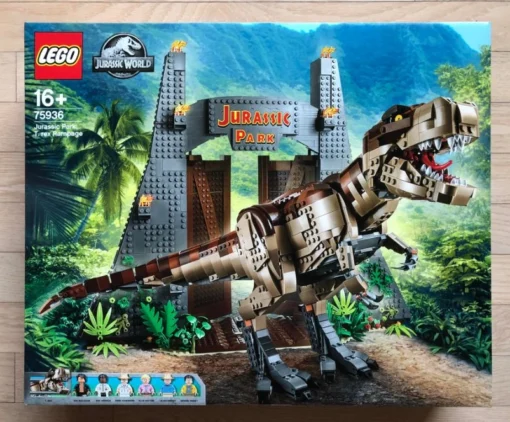 This is not a standard retail toy. The LEGO Jurassic Park T. Rex Rampage 75936 is a premium adult-oriented collector set designed for ages 16 and above, built around the nostalgia and cultural weight of the original 1993 Jurassic Park film. It reproduces the most iconic scene in the franchise in brick form, combining the massive articulated T. Rex model, the recognizable Jurassic Park main gate, and six film characters into a display piece that appeals strongly to both the adult LEGO collector community and the broader Jurassic Park fan base.