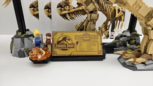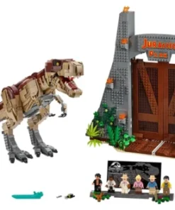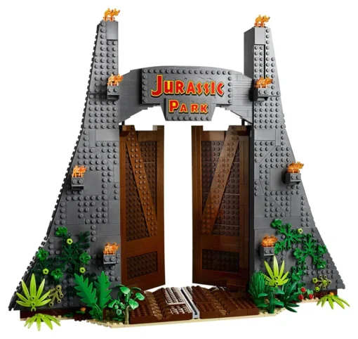 | Key Features | Moveable T. Rex with articulated head, jaw, and tail; iconic Jurassic Park main gate; detailed film scene recreations within gate structure; six film character minifigures; baby dinosaur figure; collector information plaque |